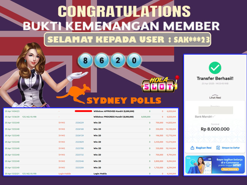 HOLASLOT TOGEL SYDNEY 20 April 2025,HOLASLOT,Di HOLASLOT,, mulai dari kemenangan kecil yang membanggakan hingga jackpot fantastis yang mengubah hidup. Dengan berbagai pilihan pasaran TOGEL terlengkap, mulai dari pasaran lokal hingga internasional, HOLASLOT memberikan peluang terbaik bagi siapa saja yang ingin mencoba keberuntungannya.