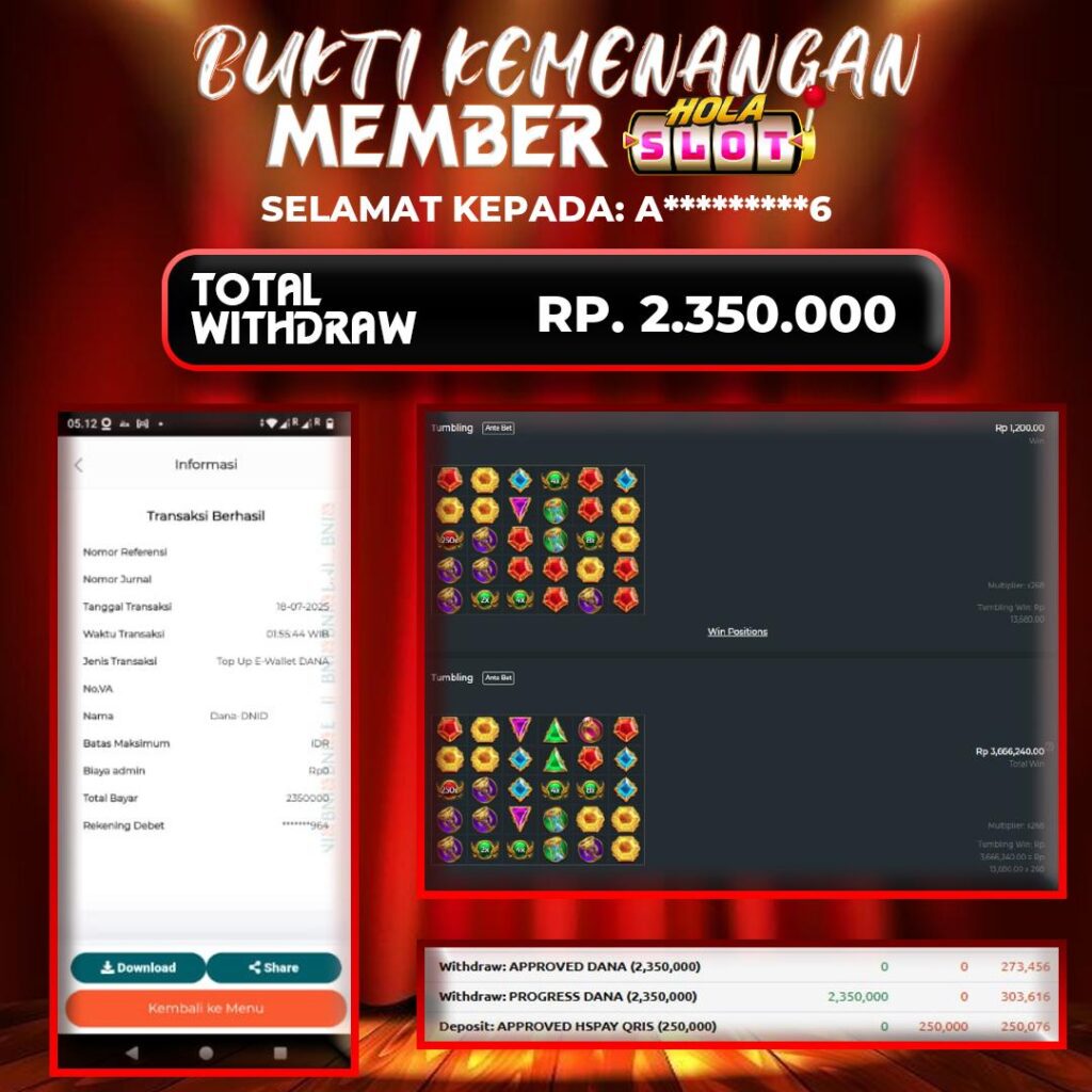 Selama bermain di HOLASLOT, banyak pemain telah meraih kemenangan besar yang dibagikan melalui halaman testimoni kami. Oleh karena itu, testimoni ini menjadi bukti nyata bahwa peluang menang sangat terbuka bagi siapa saja. Selanjutnya, dengan banyaknya promo menarik yang tersedia setiap hari, para pemain memiliki kesempatan lebih besar untuk meraih hasil maksimal. Sementara itu, berbagai bonus seperti cashback, free spin, dan turnamen berhadiah terus diluncurkan untuk menambah keseruan. Sebagai kesimpulan, HOLASLOT bukan hanya tempat bermain game online, tapi juga ladang keberuntungan yang layak Anda coba sekarang juga!.