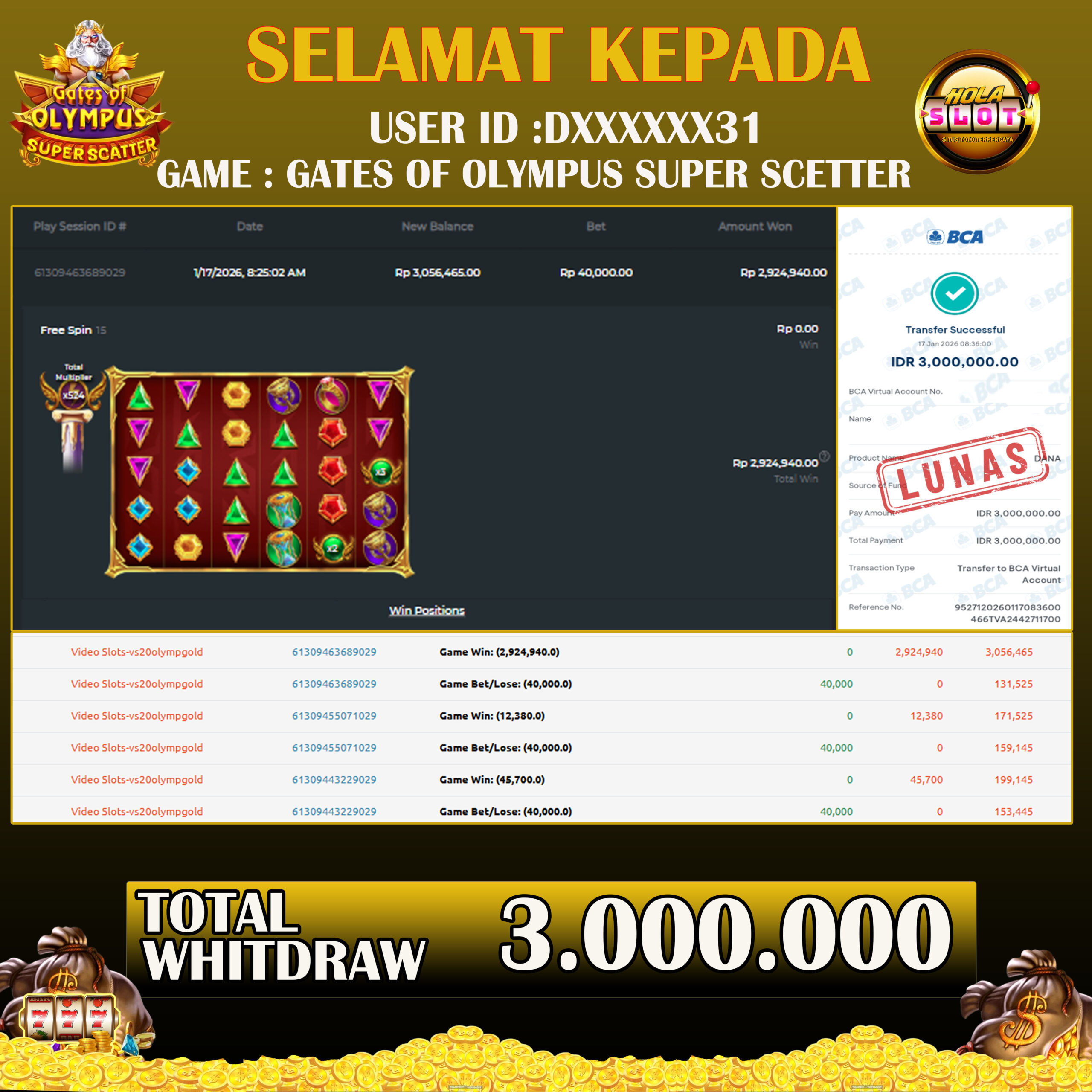 JACKPOT SLOT GATES OF OLYMPUS SUPER SCETTER 17 JANUARI 2026