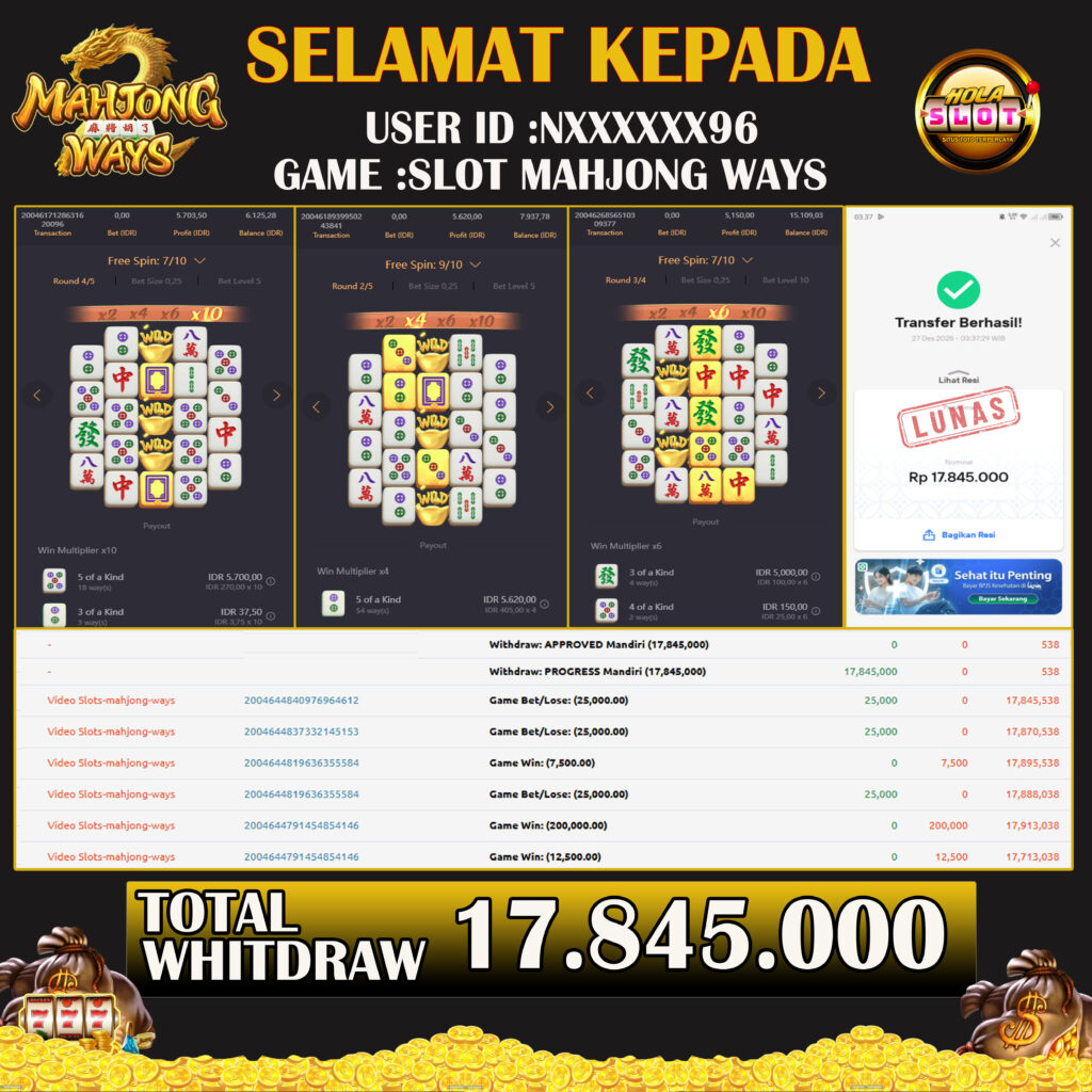 JACKPOT SLOT MAHJONG WAYS 27 DESEMBER 2025 Jackpot Slot Gacor, Kemenangan Slot, Bukti Kemenangan Slot, Kemenangan Slot Pragmatic Play, Menang Slot online, Slot Gacor, Situs Aman Terpercaya, WD Berapapun Pasti DI Bayar Tuntas, Maxwin Slot Online.