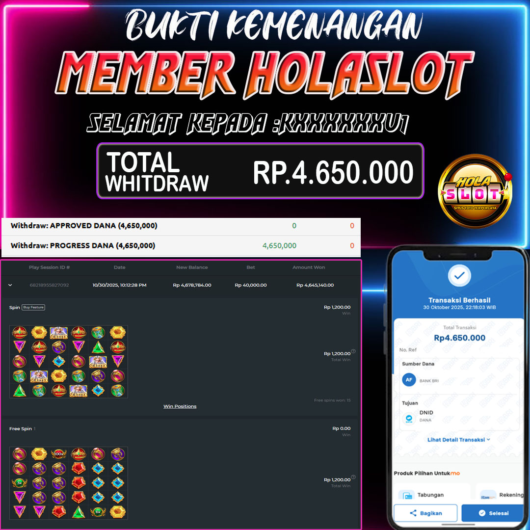 Selama bermain di HOLASLOT, banyak pemain telah meraih kemenangan besar yang dibagikan melalui halaman testimoni kami. Oleh karena itu, testimoni ini menjadi bukti nyata bahwa peluang menang sangat terbuka bagi siapa saja. Selanjutnya, dengan banyaknya promo menarik yang tersedia setiap hari, para pemain memiliki kesempatan lebih besar untuk meraih hasil maksimal. Sementara itu, berbagai bonus seperti cashback, free spin, dan turnamen berhadiah terus diluncurkan untuk menambah keseruan. Sebagai kesimpulan, HOLASLOT bukan hanya tempat bermain game online, tapi juga ladang keberuntungan yang layak Anda coba sekarang juga!.