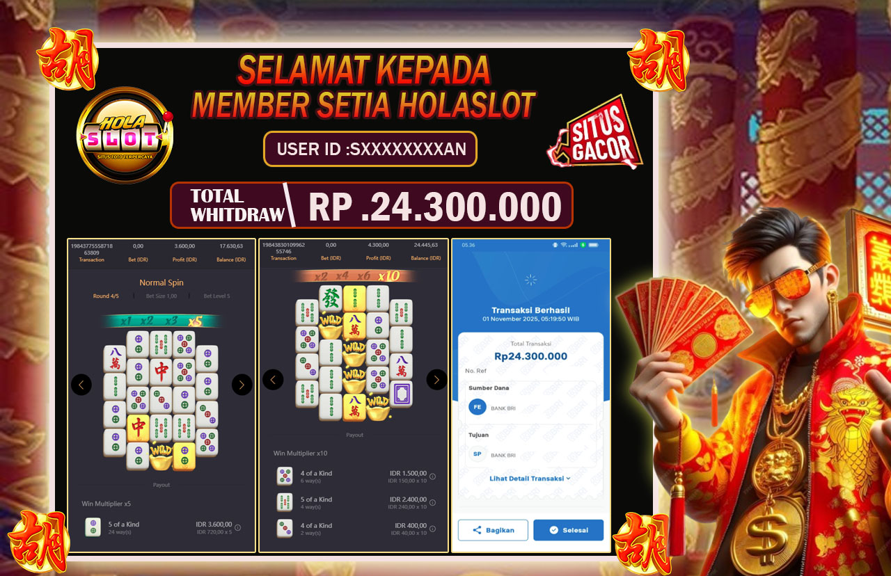 Selama bermain di HOLASLOT, banyak pemain telah meraih kemenangan besar yang dibagikan melalui halaman testimoni kami. Oleh karena itu, testimoni ini menjadi bukti nyata bahwa peluang menang sangat terbuka bagi siapa saja. Selanjutnya, dengan banyaknya promo menarik yang tersedia setiap hari, para pemain memiliki kesempatan lebih besar untuk meraih hasil maksimal. Sementara itu, berbagai bonus seperti cashback, free spin, dan turnamen berhadiah terus diluncurkan untuk menambah keseruan. Sebagai kesimpulan, HOLASLOT bukan hanya tempat bermain game online, tapi juga ladang keberuntungan yang layak Anda coba sekarang juga!.