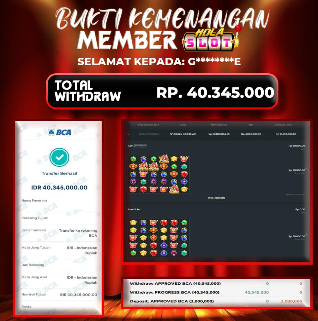 Selama bermain di HOLASLOT, banyak pemain telah meraih kemenangan besar yang dibagikan melalui halaman testimoni kami. Oleh karena itu, testimoni ini menjadi bukti nyata bahwa peluang menang sangat terbuka bagi siapa saja. Selanjutnya, dengan banyaknya promo menarik yang tersedia setiap hari, para pemain memiliki kesempatan lebih besar untuk meraih hasil maksimal. Sementara itu, berbagai bonus seperti cashback, free spin, dan turnamen berhadiah terus diluncurkan untuk menambah keseruan. Sebagai kesimpulan, HOLASLOT bukan hanya tempat bermain game online, tapi juga ladang keberuntungan yang layak Anda coba sekarang juga!.