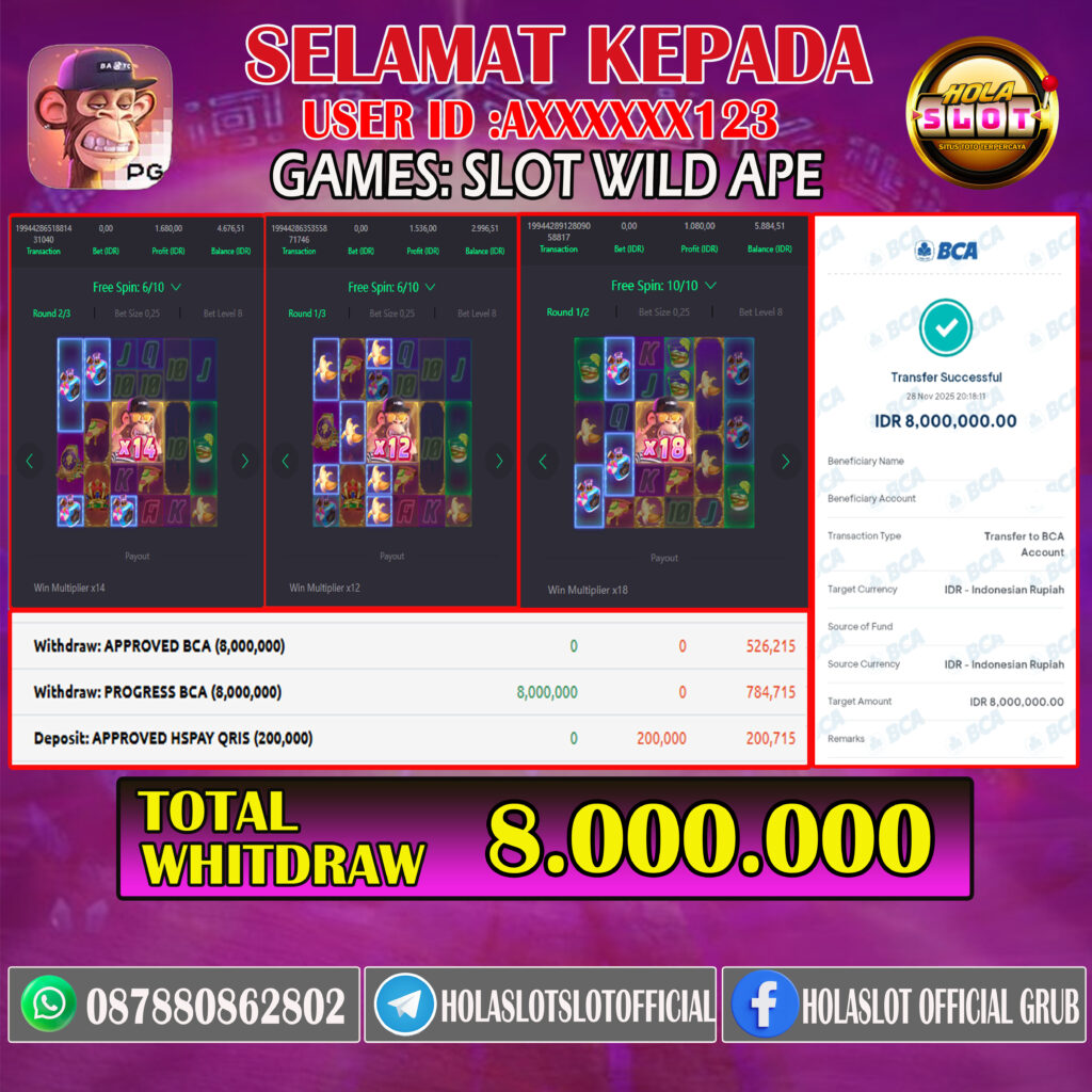 JACKPOT SLOT WILD APE 29 NOVEMBER 2025, Jackpot Slot Gacor, Kemenangan Slot, Bukti Kemenangan Slot, Kemenangan Slot Pragmatic Play, Menang Slot online, Slot Gacor, Situs Aman Terpercaya, WD Berapapun Pasti DI Bayar Tuntas, Maxwin Slot Online.
