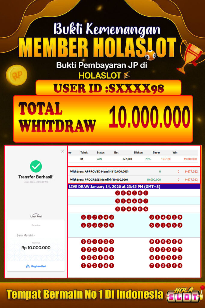 Selama bermain di HOLASLOT, banyak pemain telah meraih kemenangan besar yang dibagikan melalui halaman testimoni kami. Oleh karena itu, testimoni ini menjadi bukti nyata bahwa peluang menang sangat terbuka bagi siapa saja. Selanjutnya, dengan banyaknya promo menarik yang tersedia setiap hari, para pemain memiliki kesempatan lebih besar untuk meraih hasil maksimal. Sementara itu, berbagai bonus seperti cashback, free spin, dan turnamen berhadiah terus diluncurkan untuk menambah keseruan. Sebagai kesimpulan, HOLASLOT bukan hanya tempat bermain game online, tapi juga ladang keberuntungan yang layak Anda coba sekarang juga!.